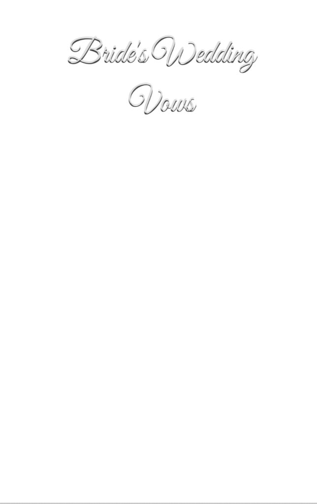 This small booklet is a way to create a keepsake of your vows. After you write them on these pages, you will speak them at your wedding, and then treasure those beautiful words for the rest of your lives.